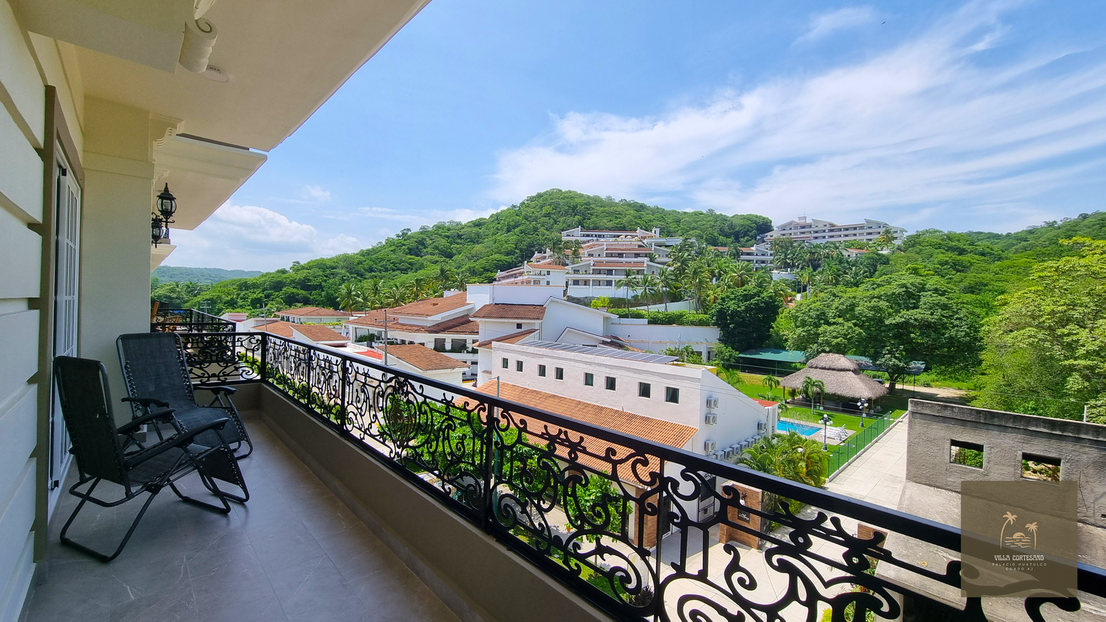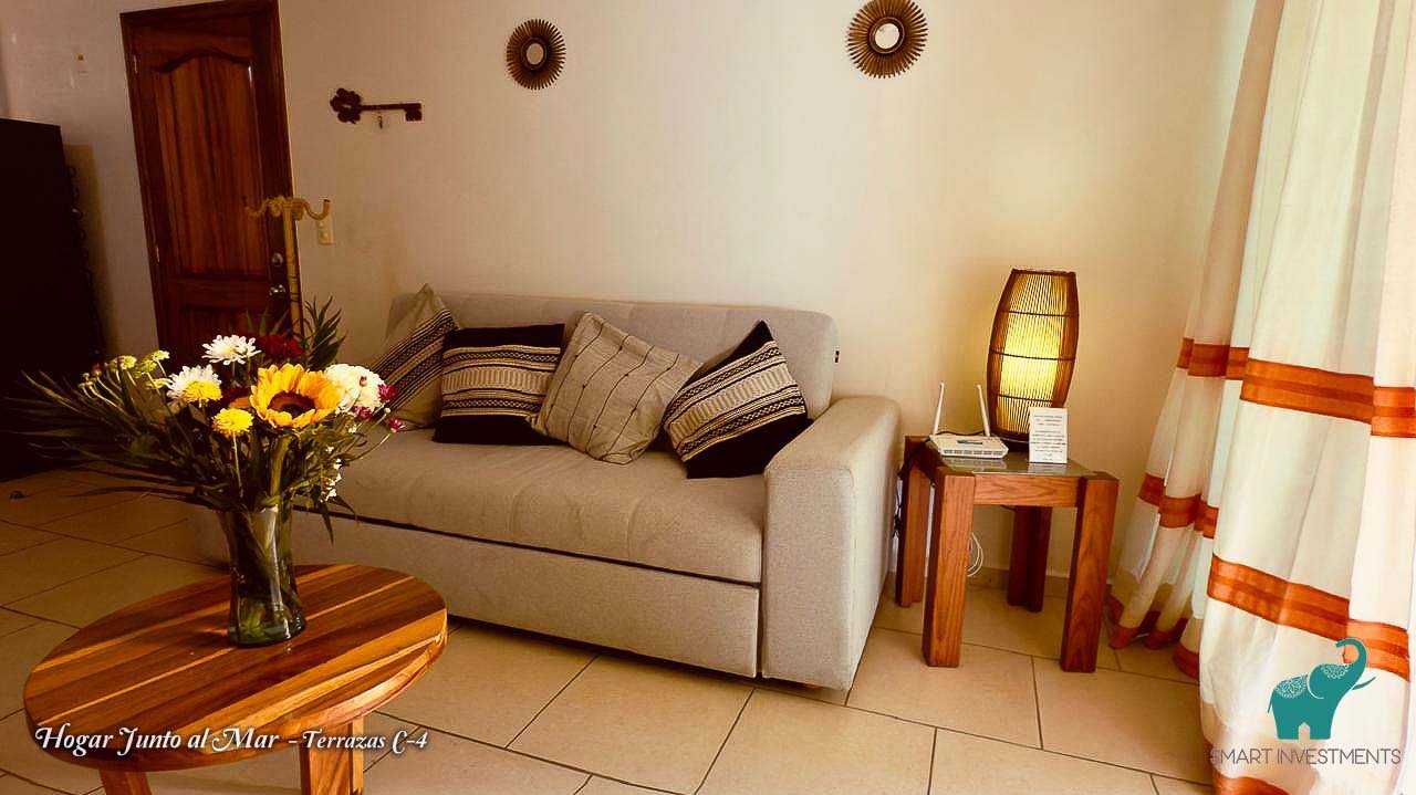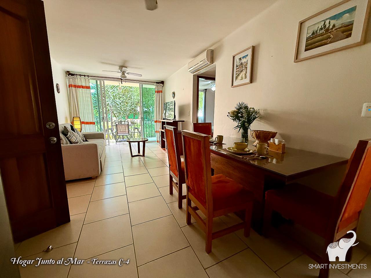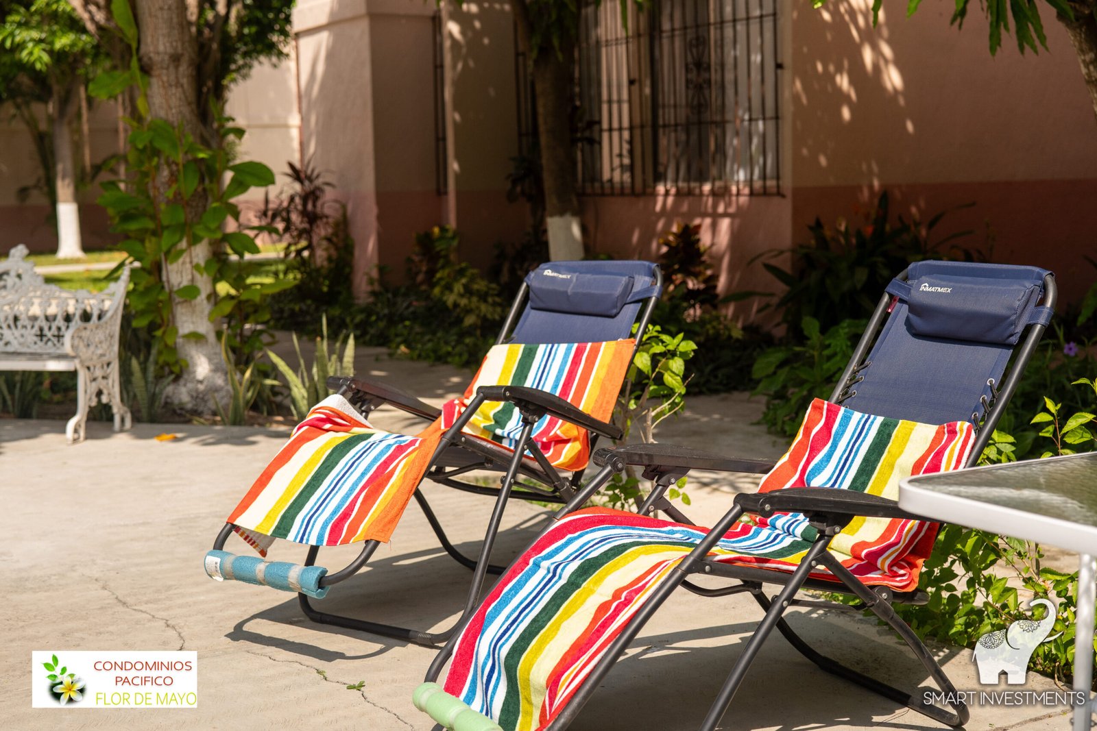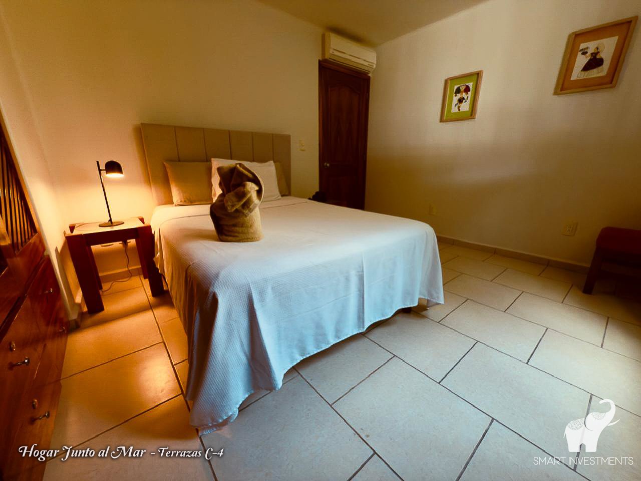 Bonito condominio, tranquilo, Con confortables muebles de sala y recamaras. La recamara principal, cuenta con un hermoso balcón privado decorado, donde usted puede por la tarde tomar una refrescante bebida, o también optar por montar un comedor provisional en la terraza común a la entrada del condominio. Se proveen de 4 sillas pleglables y mesa y así, poder gozar de mejor vista y más espacio.