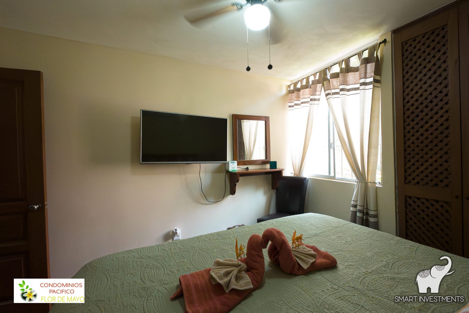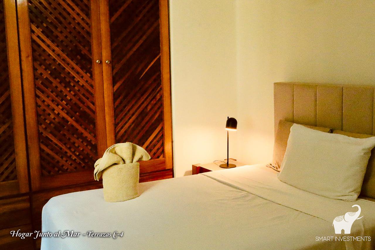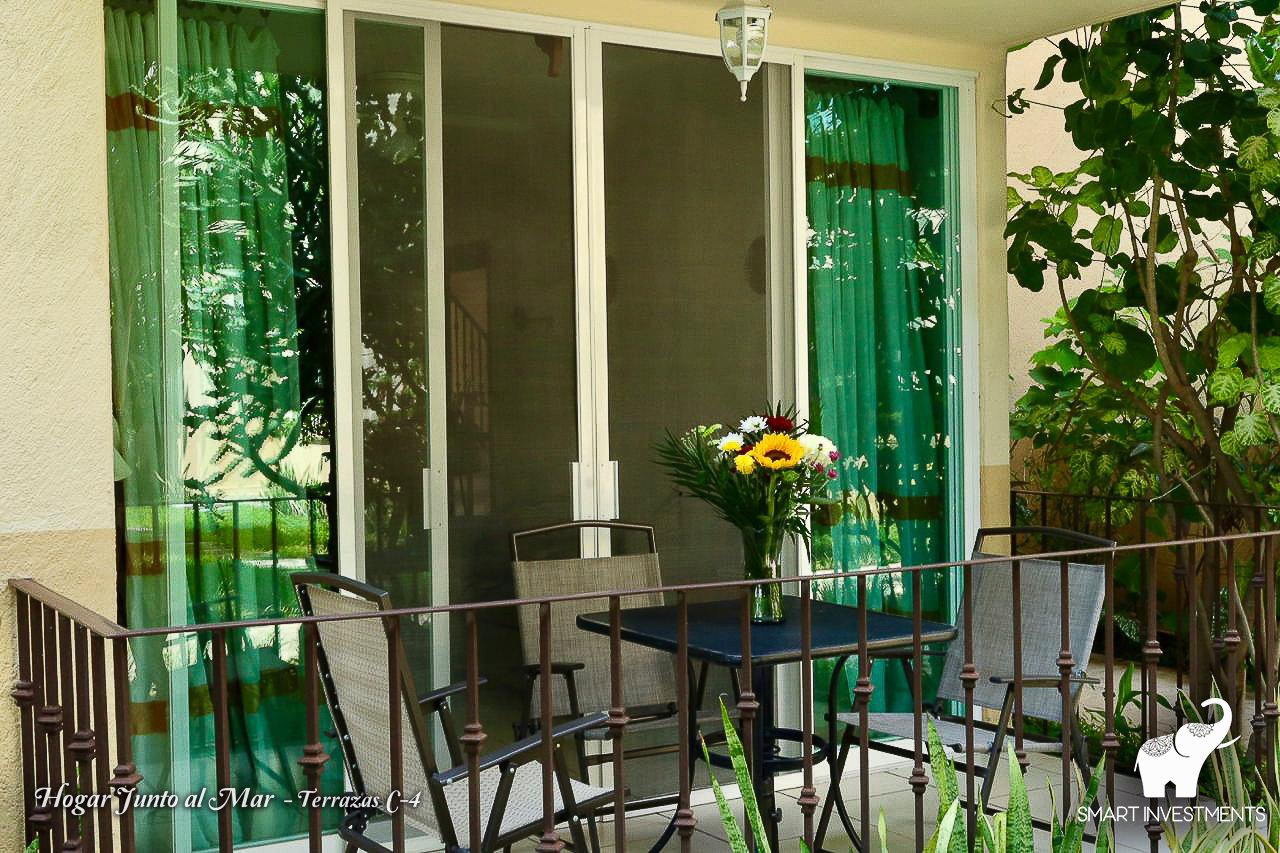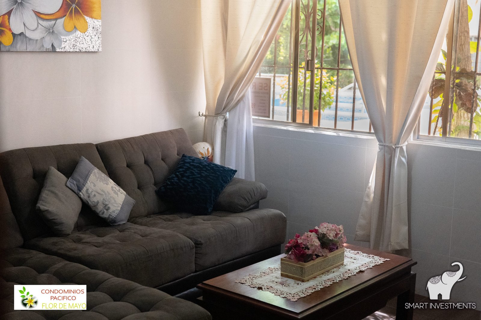 Bonito condominio, tranquilo, Con confortables muebles de sala y recamaras. La recamara principal, cuenta con un hermoso balcón privado decorado, donde usted puede por la tarde tomar una refrescante bebida, o también optar por montar un comedor provisional en la terraza común a la entrada del condominio. Se proveen de 4 sillas pleglables y mesa y así, poder gozar de mejor vista y más espacio.