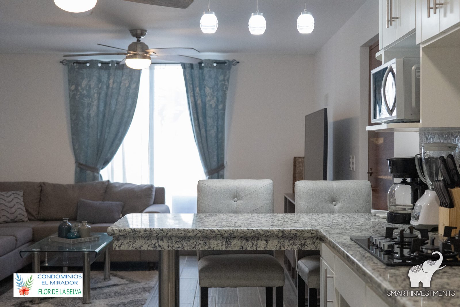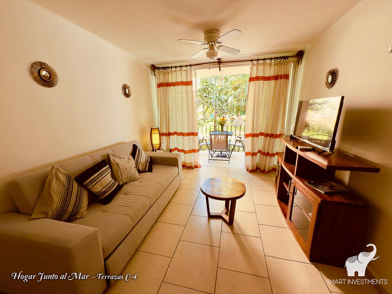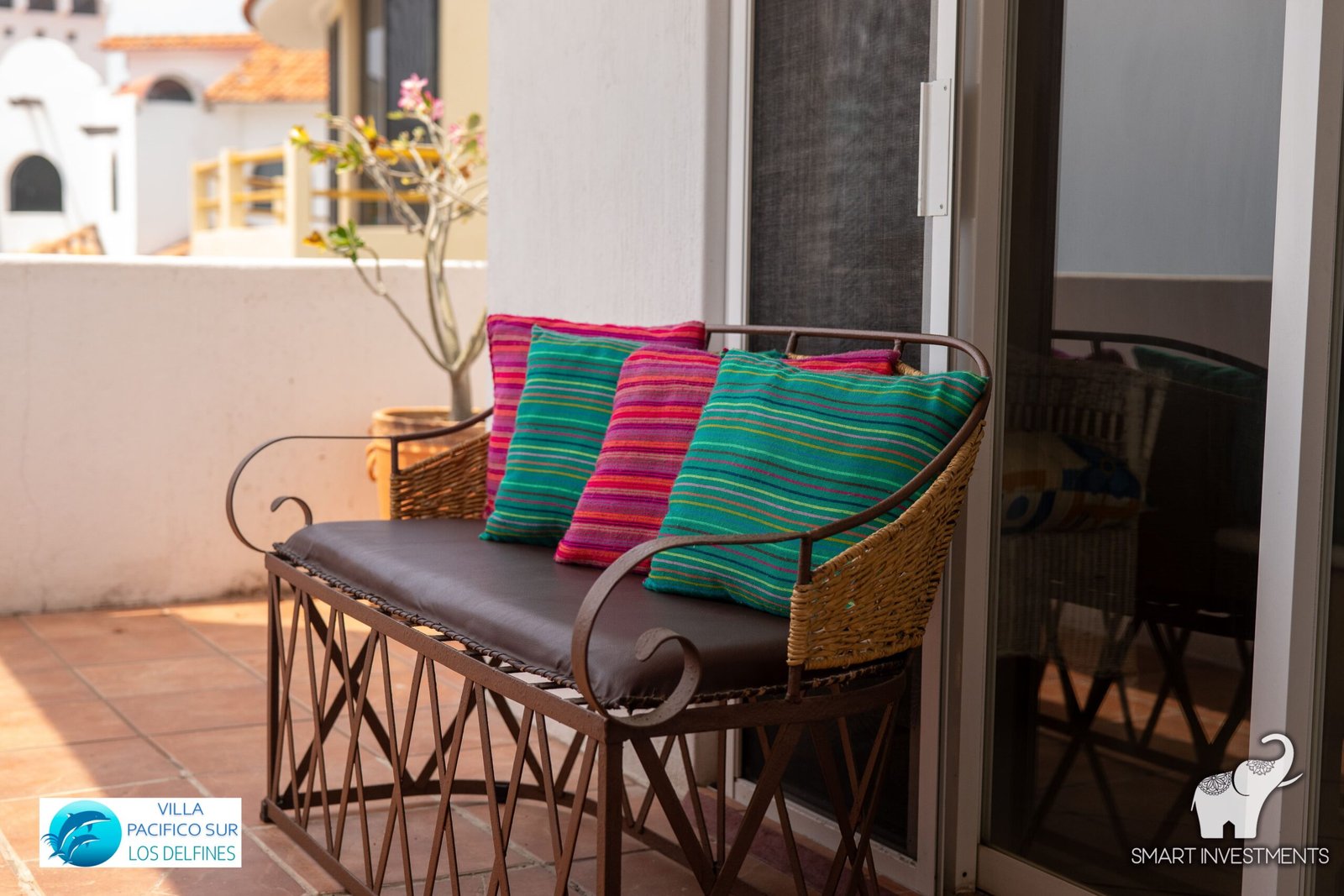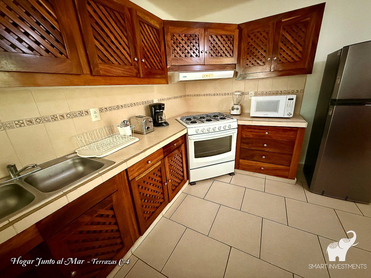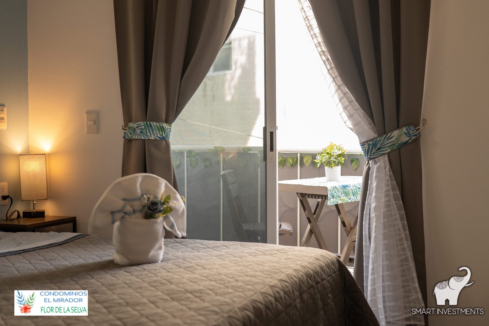 Bonito condominio, tranquilo, Con confortables muebles de sala y recamaras. La recamara principal, cuenta con un hermoso balcón privado decorado, donde usted puede por la tarde tomar una refrescante bebida, o también optar por montar un comedor provisional en la terraza común a la entrada del condominio. Se proveen de 4 sillas pleglables y mesa y así, poder gozar de mejor vista y más espacio.
