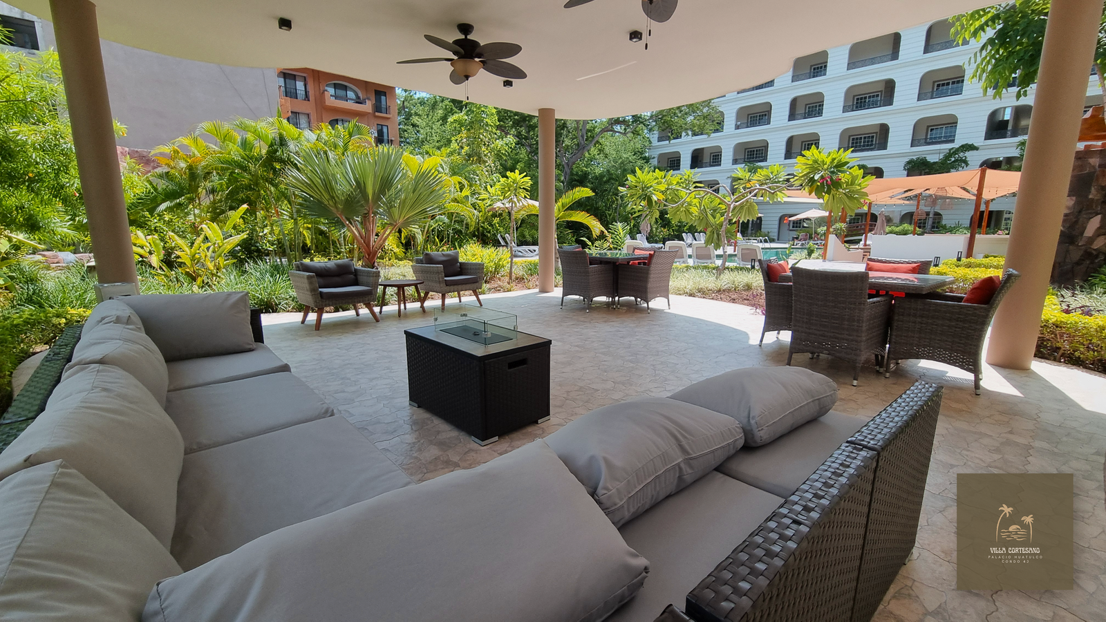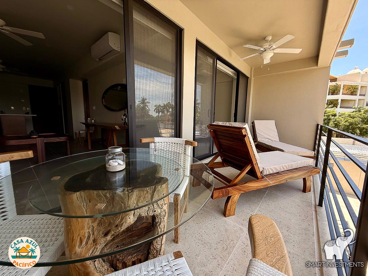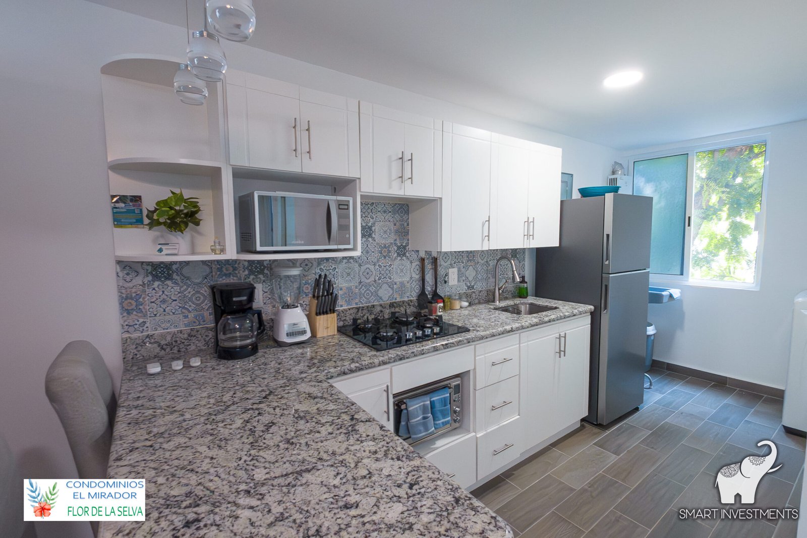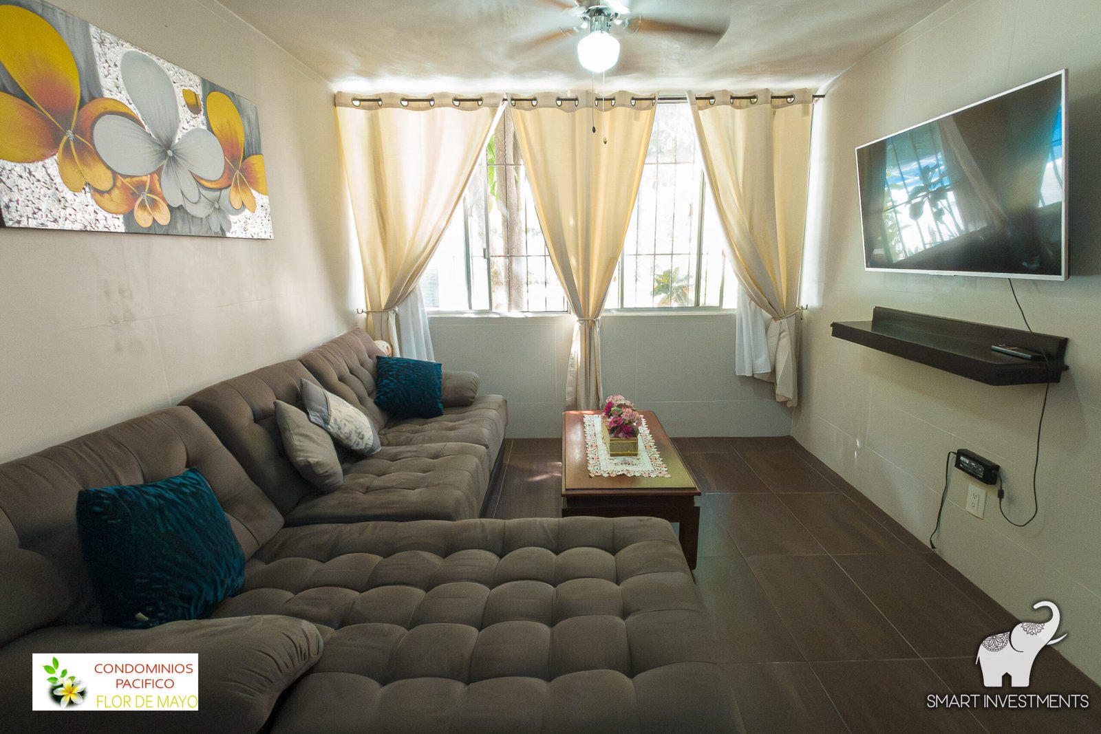 Bonito condominio, tranquilo, Con confortables muebles de sala y recamaras. La recamara principal, cuenta con un hermoso balcón privado decorado, donde usted puede por la tarde tomar una refrescante bebida, o también optar por montar un comedor provisional en la terraza común a la entrada del condominio. Se proveen de 4 sillas pleglables y mesa y así, poder gozar de mejor vista y más espacio.
