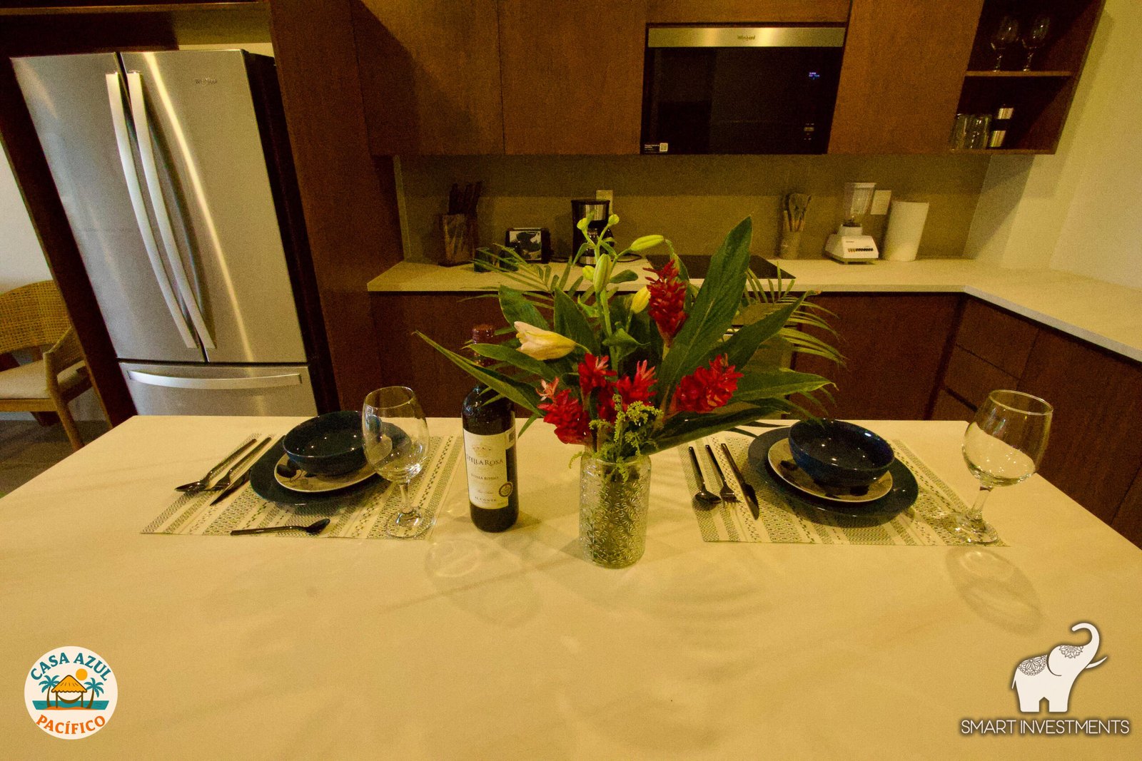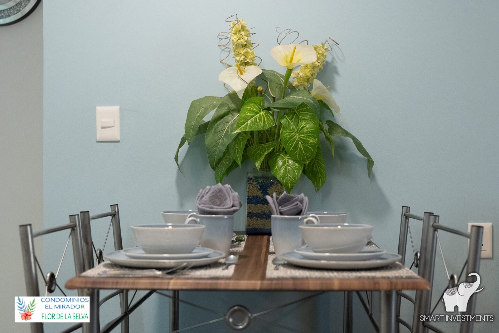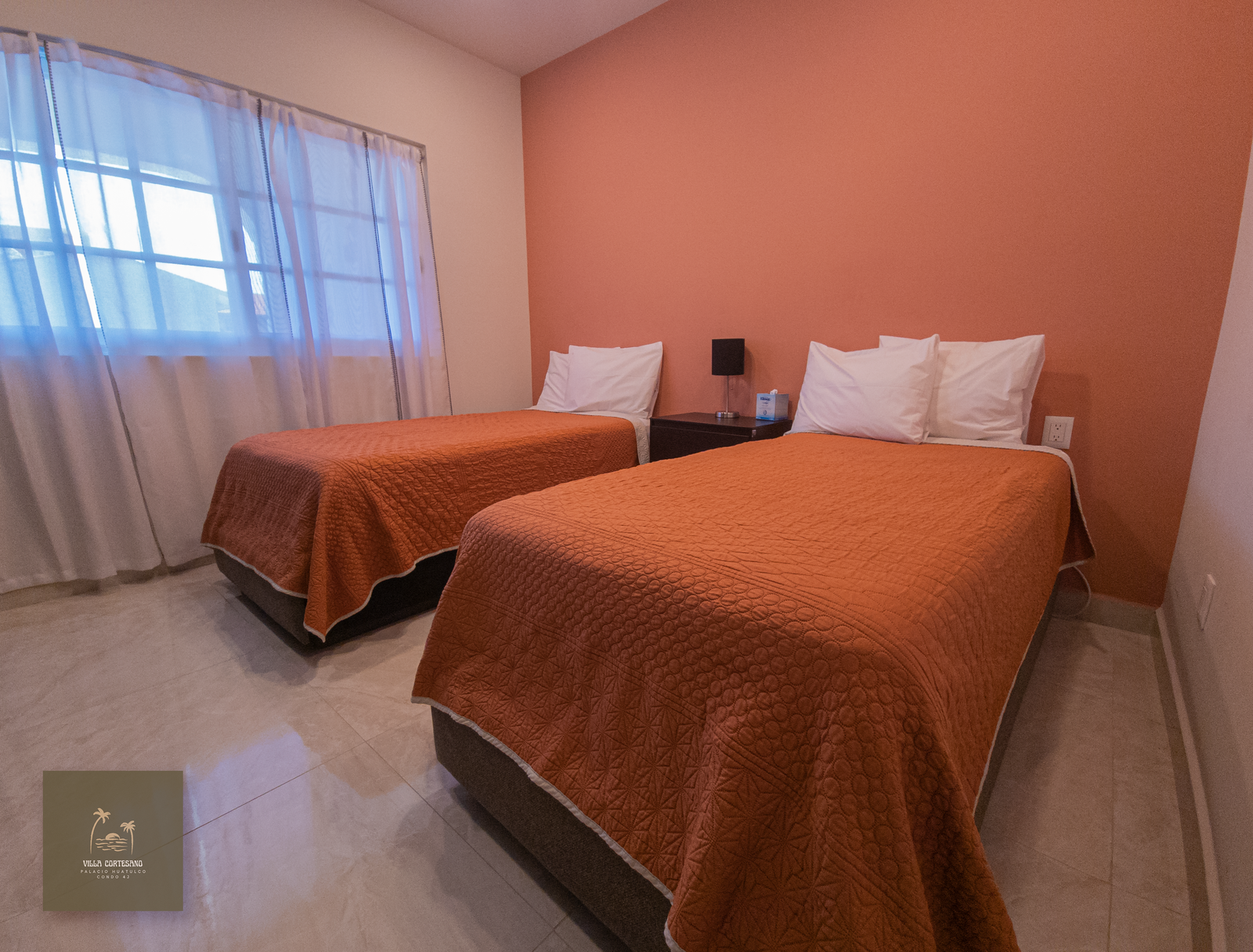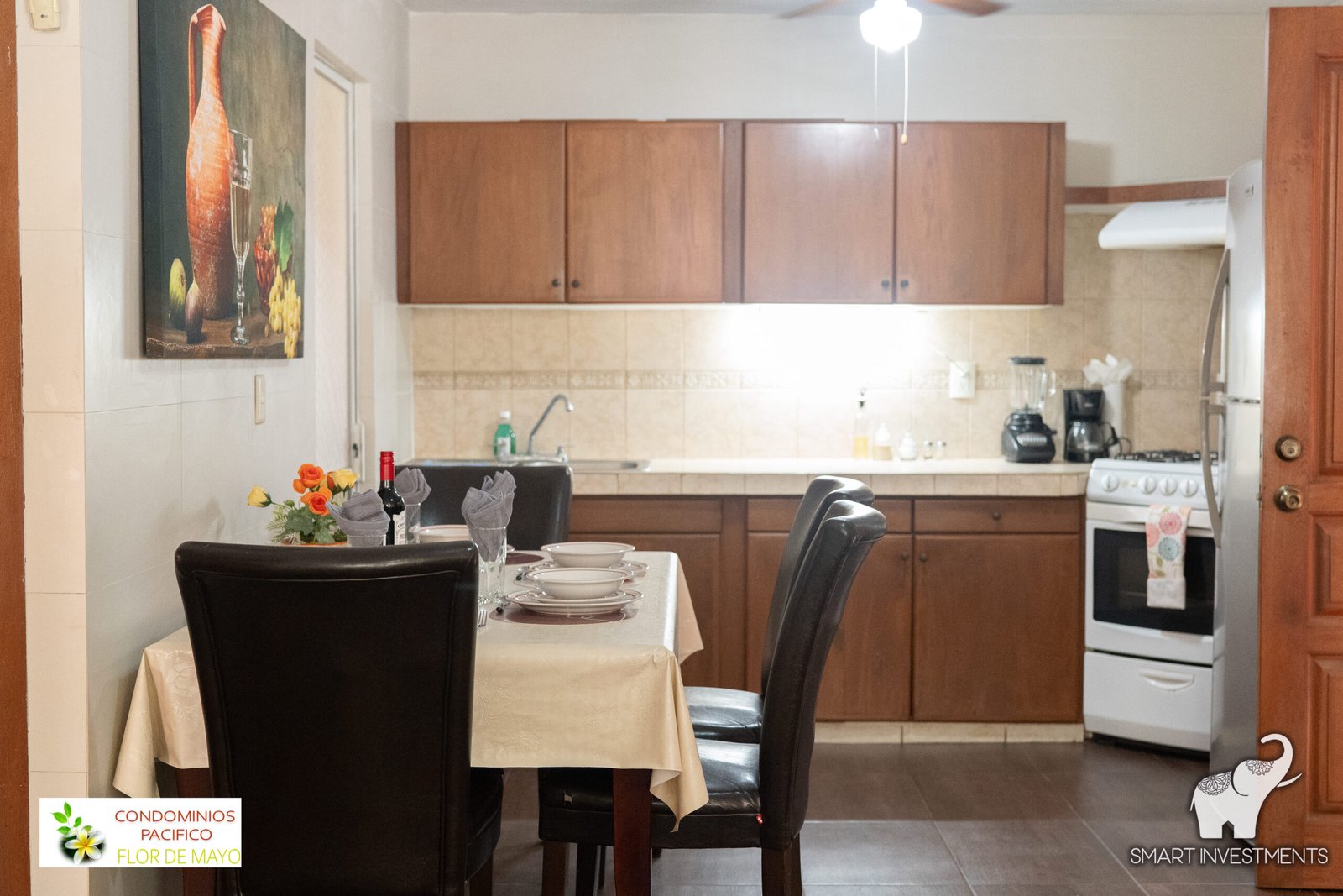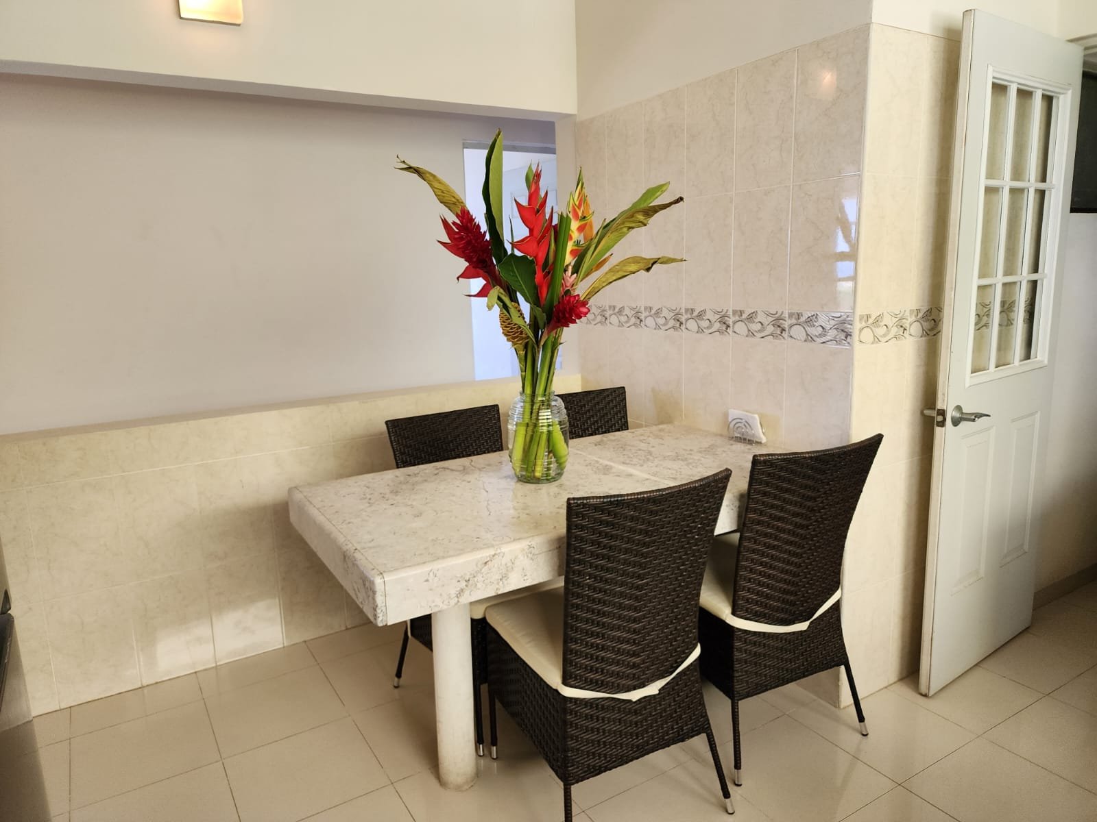 Bonito condominio, tranquilo, Con confortables muebles de sala y recamaras. La recamara principal, cuenta con un hermoso balcón privado decorado, donde usted puede por la tarde tomar una refrescante bebida, o también optar por montar un comedor provisional en la terraza común a la entrada del condominio. Se proveen de 4 sillas pleglables y mesa y así, poder gozar de mejor vista y más espacio.
