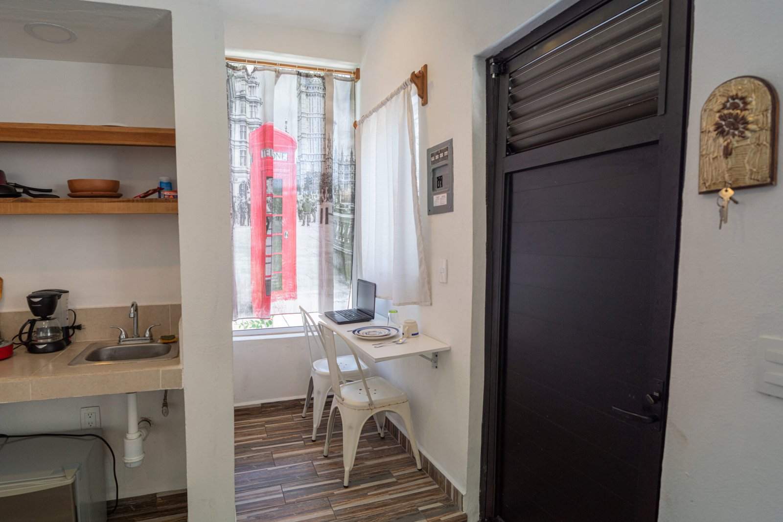 Descubre un sitio confortable listo para relajarte. Hermoso condominio iluminado y ventilado, Recién remodelado y amueblado. 2 recamaras, una con terraza, cocina equipada y un baño con decoraciones de playa. ubicado a 10 min caminando del Zócalo, a 15 min de la Playa. ideal para parejas, familia y amigos.