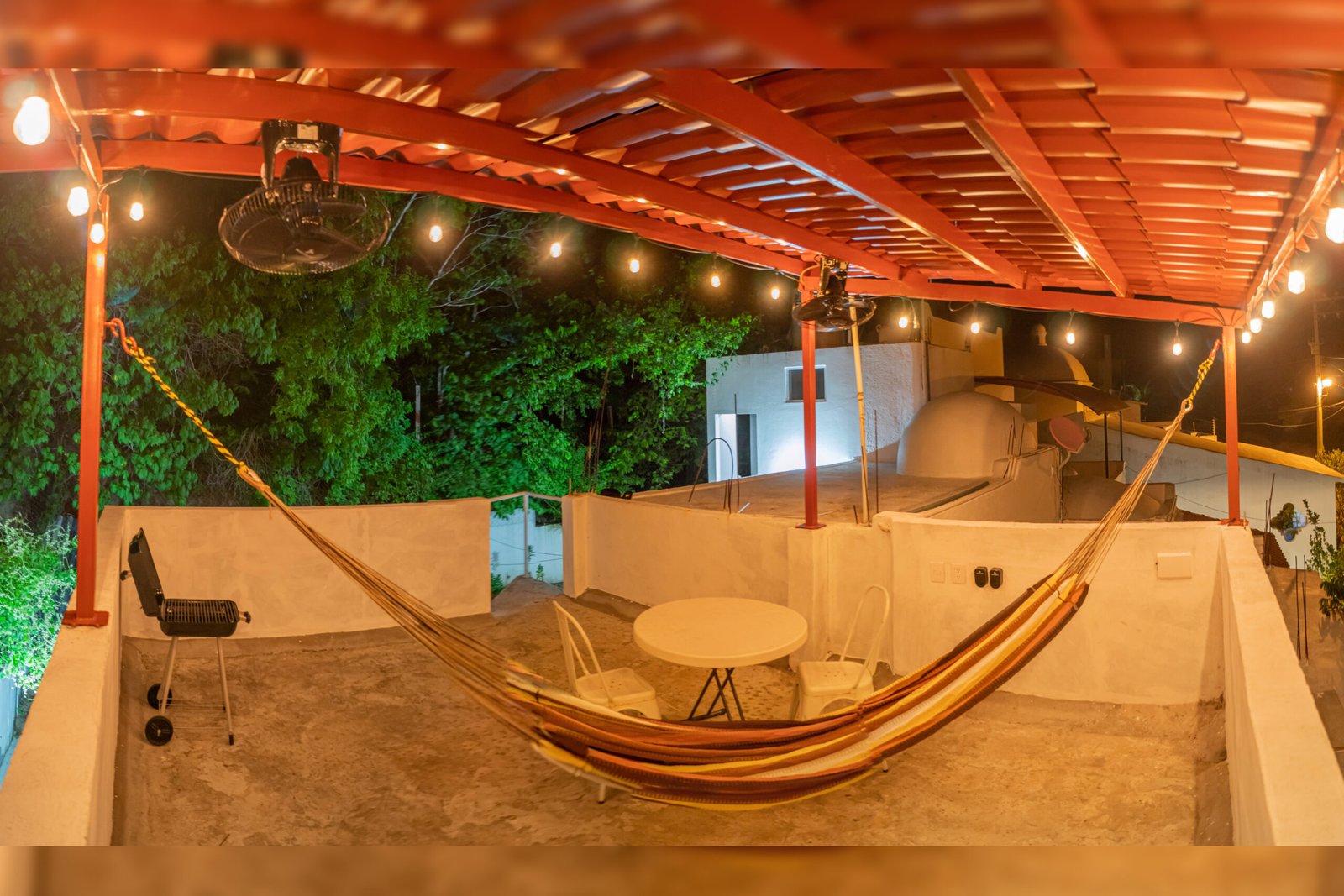 La suite cuenta con WiFi, Smart TV con Netflix, baño privado, cocineta equipada, mesa multifuncional y una amplia terraza con hamaca y asador. Perfecta para relajarte bajo las estrellas o disfrutar de una noche iluminada por la luna.