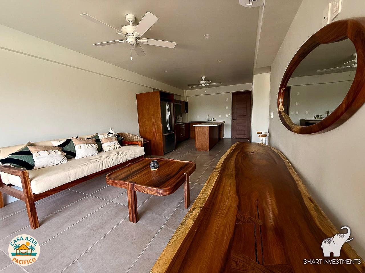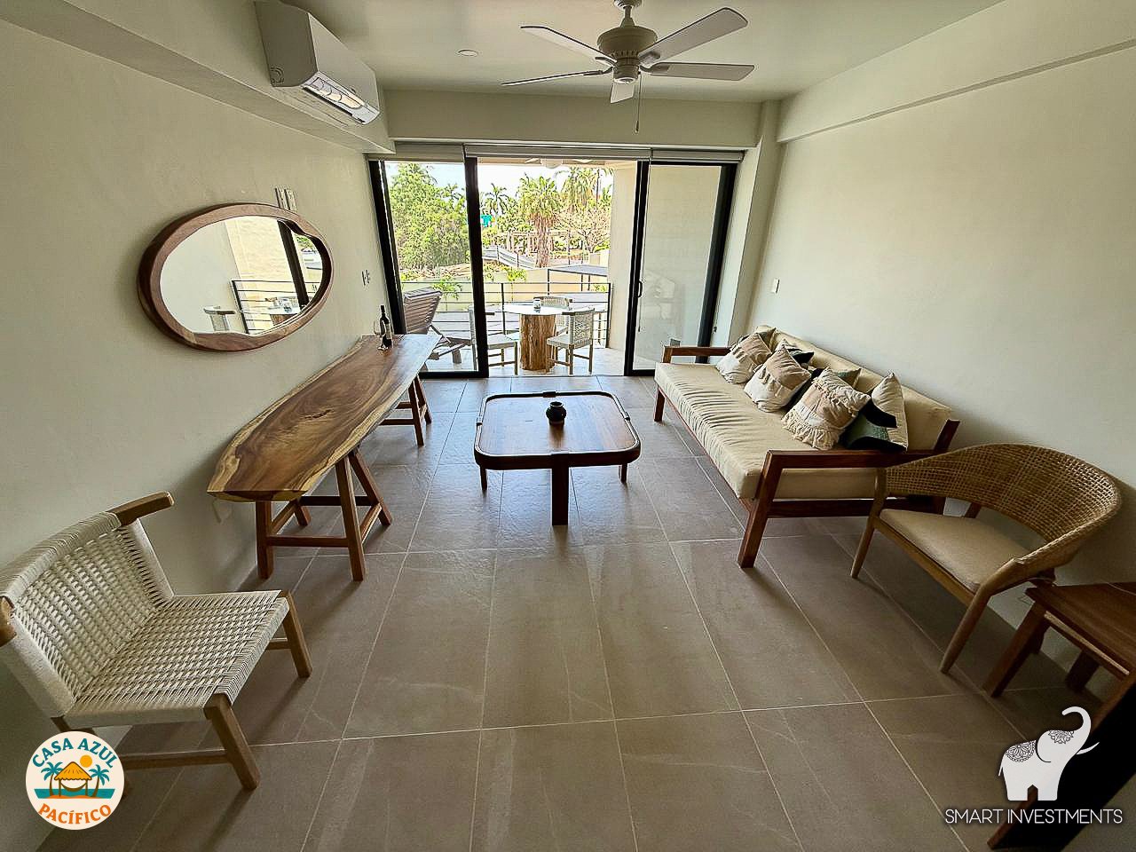 La estancia incluye una terraza privada y cuarto de servicio con lavadora. El edificio, moderno y bien ubicado, brinda acceso a increíbles amenidades como alberca, jacuzzi, terraza para yoga, locales comerciales y estacionamiento privado, todo a tan solo 5 minutos de una playa pública.